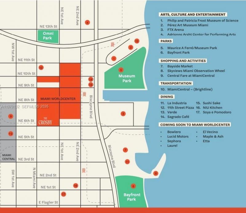 Investment Opportunity | No Rental Restrictions | Fully Furnished | New ConstructionWelcome to The Crosby Miami Worldcenter, one of Downtown Miamis most coveted new addresses. Unit 507 is a beautifully appointed 2-bedroom, 2-bathroom residence featuring 9-foot ceilings with floor-to-ceiling glass windows, a private balcony, and fully finished interiors curated by renowned design firm AvroKO. The gourmet kitchen boasts custom Italian cabinetry and premium Bosch appliances, including a paneled ref...Investment Opportunity | No Rental Restrictions | Fully Furnished | New ConstructionWelcome to The Crosby Miami Worldcenter, one of Downtown Miamis most coveted new addresses. Unit 507 is a beautifully appointed 2-bedroom, 2-bathroom residence featuring 9-foot ceilings with floor-to-ceiling glass windows, a private balcony, and fully finished interiors curated by renowned design firm AvroKO. The gourmet kitchen boasts custom Italian cabinetry and premium Bosch appliances, including a paneled refrigerator, convection oven, cooktop, and dishwasher. In-unit full-size washer and dryer included. Rain showers in primary bathroom.With NO RENTAL RESTRICTIONS, this is a true turnkey investment asset ? ideal for short-term or long-term rentals from day one.Residents enjoy over 22,000 SF of resort-style amenities: rooftop pool with jacuzzi and panoramic Biscayne Bay views, BBQ cabanas, state-of-the-art fitness center with saunas and plunge pools, coworking spaces, gaming lounge, clubroom with private dining, juice and coffee bar, Italian trellis garden, and a private rooftop restaurant/bar. 24/7 concierge and security services complete the experience.Perfectly located in the heart of Miami, steps from Miami Worldcenters retail and dining, Brightline/MiamiCentral, Metromover, Kaseya Center, Pérez Art Museum, and Brickell. Urban living at its finest.
