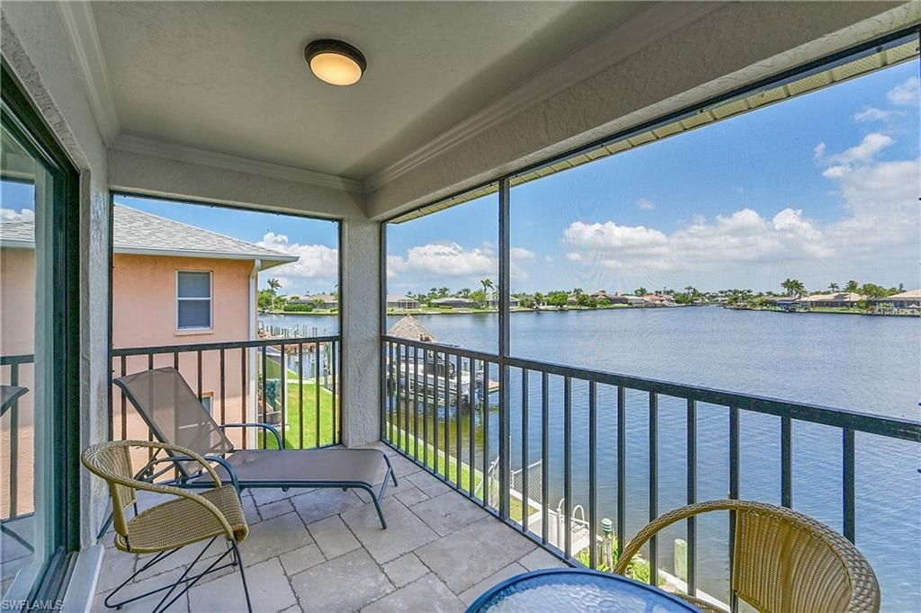 Must See Gulf access condo! Rarely available second floor end unit with enchanting views over Lake Louise in the heart of Southwest Cape Coral. Watch dolphins, tarpon, schools of jack crevalle and manatee families cruise by as you enjoy coffee and sunrise from your balcony, or sip cocktails at twilight looking over this glorious saltwater lake. Beautifully remodeled open floor plan, with shaker cabinets, granite countertops, stainless steel appliances, 6 ft kitchen island with breakfast bar, and...Must See Gulf access condo! Rarely available second floor end unit with enchanting views over Lake Louise in the heart of Southwest Cape Coral. Watch dolphins, tarpon, schools of jack crevalle and manatee families cruise by as you enjoy coffee and sunrise from your balcony, or sip cocktails at twilight looking over this glorious saltwater lake. Beautifully remodeled open floor plan, with shaker cabinets, granite countertops, stainless steel appliances, 6 ft kitchen island with breakfast bar, and crown molding trim throughout. Floors are wide walnut plank laminate, with travertine tile in bathrooms, laundry room and screened lanai. The spacious primary suite offers a lake view, large walk-in closet, double sinks and travertine tiled shower. New impact-resistant windows on the front and side of the unit for added insulation and peace of mind. This well-maintained building has a new roof (post-Ian), new carports, re-surfaced asphalt driveway and parking areas, individual storage lockers, all newly re-painted exterior. Never flooded. Convenient to Publix, close to downtown restaurants, Tarpon Point and Cape Harbor. For boaters, Gulf access with two bridges to open water. Dockage on as-available basis, addition of a boat lift is subject to association approval. Enjoy the ease, comfort and convenience of this TURNKEY second-home coastal retreat or make it your year-round residence.