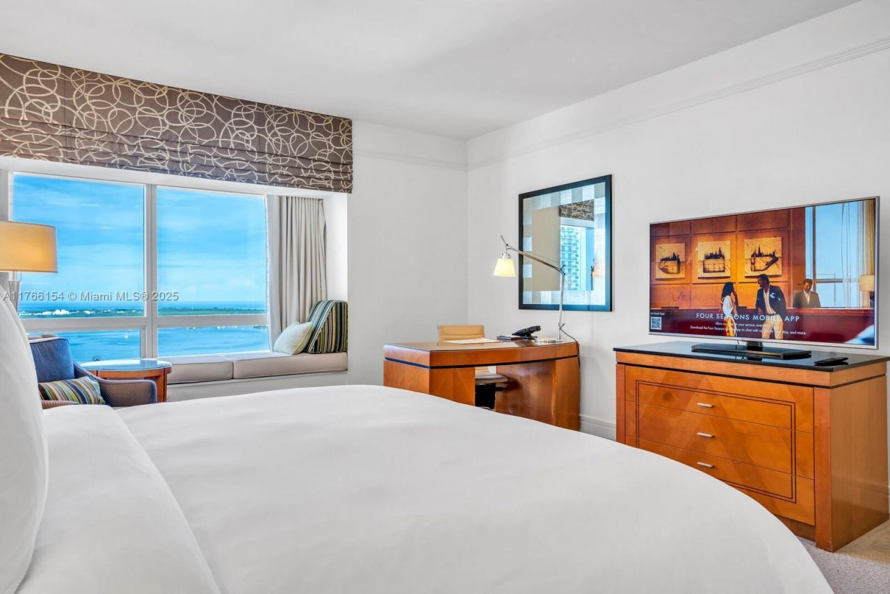 Experience unparalleled luxury in this top-floor, fully furnished 2-bed, 2.5bath residence at the prestigious Four Seasons Hotel The expansive open floor plan features a spacious living area and a well-equipped kitchen, all enhanced by contemporary furnishings, breathtaking views of Biscayne Bay & the Miami skyline. ?As a guest, youll enjoy exclusive access to the hotels five-star amenities, including the renowned pool deck, Equinox gym, spa services, and exceptional dining options. Located in t...Experience unparalleled luxury in this top-floor, fully furnished 2-bed, 2.5bath residence at the prestigious Four Seasons Hotel The expansive open floor plan features a spacious living area and a well-equipped kitchen, all enhanced by contemporary furnishings, breathtaking views of Biscayne Bay & the Miami skyline. ?As a guest, youll enjoy exclusive access to the hotels five-star amenities, including the renowned pool deck, Equinox gym, spa services, and exceptional dining options. Located in the vibrant Brickell neighborhood, youre steps away from world-class dining &luxury shopping. ?Whether youre seeking a serene retreat or a base to explore Miamis dynamic culture, this unit offers the perfect blend of hotel amenities & private luxury ensuring a stay that exceeds your expectations