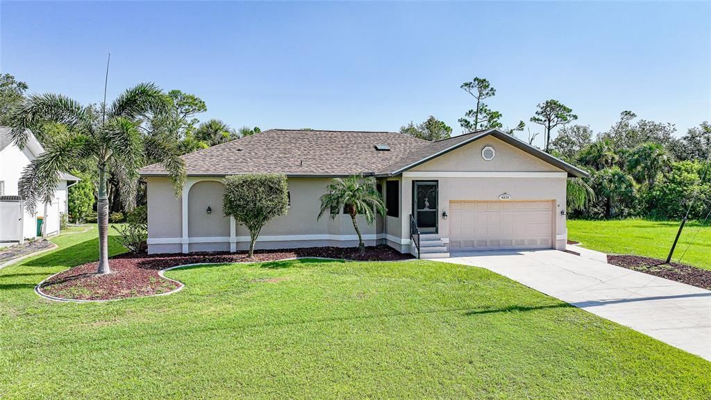 Edit mortgage details for a more accurate paymentWelcome to your slice of paradise in the highly sought-after community of Burnt Store Lakes! This 3-bedroom, 2-bathroom home offers 1,671 square feet of thoughtfully designed living space, combining comfort, style, and functionality. Step inside to find a light-filled interior featuring a skylight that brightens the main living area and a kitchen that overlooks the spacious living room, creating a seamless flow for entertaining or everyday living. The kitchen also offers a cozy dining space, perfect for casual meals or morning coffee with a view of the lush outdoors. Enjoy year-round peace of mind with impact-resistant windows and sliders throughout, and a roof replaced in 2022. The home is surrounded by beautiful, mature landscaping that adds privacy, curb appeal, and a touch of Florida charm. The southern rear exposure provides all-day sun-ideal for future outdoor upgrades like a pool or extended lanai. Situated on a generously sized lot with public utilities (city water and sewer), this home sits in a tranquil, deed-restricted neighborhood known for its serene lakes, natural beauty, and proximity to Charlotte Harbor and Burnt Store Marina. Whether you're looking for a full-time residence or seasonal retreat, this well-maintained home offers the perfect blend of features and location. Come see it for yourself-schedule your private showing today!