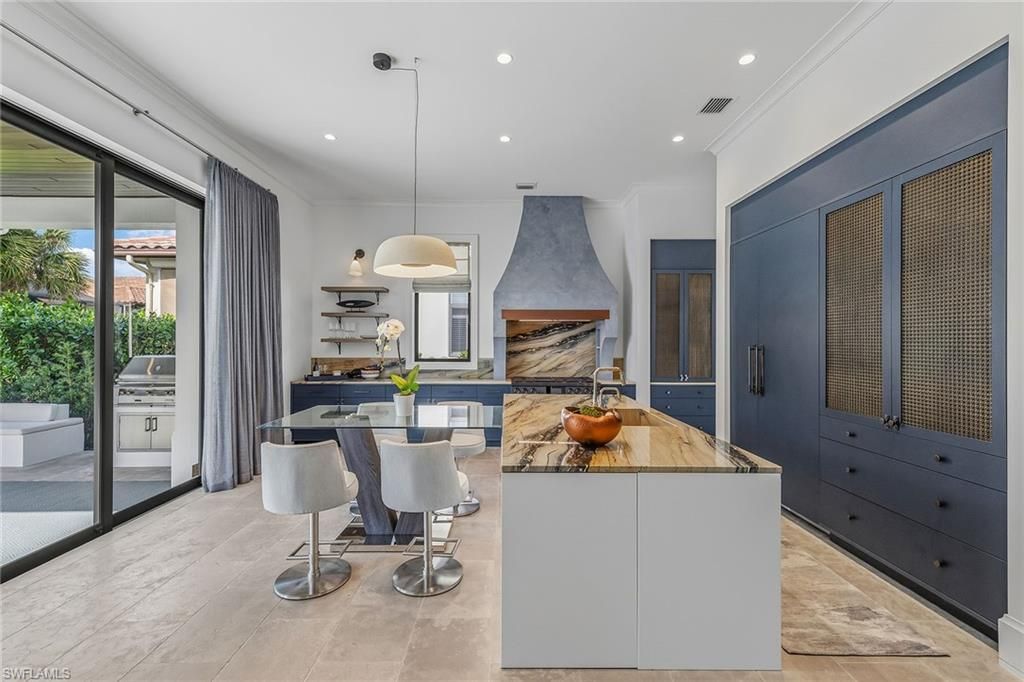 Beyond the gates of Grey Oaks, one of Naples prestigious communities, this 2024-renovated residence reveals a curated experience of architectural refinement and material excellence. Every element of this home has been redefined with purposeful design, where the essence of European craftsmanship converges with the subtle sophistication of quiet luxury. A gallery-style entry gives way to soaring ceilings and a dramatic, floor-to-ceiling picture window, drawing light across hand-selected French ant...Beyond the gates of Grey Oaks, one of Naples prestigious communities, this 2024-renovated residence reveals a curated experience of architectural refinement and material excellence. Every element of this home has been redefined with purposeful design, where the essence of European craftsmanship converges with the subtle sophistication of quiet luxury. A gallery-style entry gives way to soaring ceilings and a dramatic, floor-to-ceiling picture window, drawing light across hand-selected French antique limestone floors. The interplay of stone and sunlight continues into the main living areas, while wide-plank European white oak from Spain softens the private quarters with understated elegance. The bespoke kitchen serves as a showpiece and gathering place, with European Eggersmann cabinetry concealing storage with architectural precision. Polished slabs of Azul Zumaia exotic quartzite cascade over countertops and the island, offering a natural work of art. A professional-grade gas range and custom-designed hood anchor the culinary experience, while curated details, including an integrated pet station, speak to a residence designed for elevated everyday living. The primary suite offers sanctuary. A spa-inspired bath with a walk-in steam shower, dry sauna and custom towel warmers creates a wellness retreat at home. Backlit mirrors, sculptural lighting, and Illusion exotic quartzite imbue the space with warmth and serenity. Throughout the residence, bespoke millwork, designer window treatments, and precision lighting create cohesion and refinement. Outdoors, the stunning French limestone continues, framing intimate spaces for conversation and celebration. A summer kitchen, sculptural seating with tailored cushions and a gas fireplace invite year-round alfresco living. Artificial turf and ample landscape lighting extend the home’s atmosphere into the garden, requiring minimal upkeep yet delivering maximum presence. Additional features include impact-resistant windows and doors, whole-house reverse-osmosis filtration, a tankless gas water heater, a 2.5-car garage with custom metallic flooring, and extensive built-in storage. Set within Grey Oaks, residents enjoy three championship golf courses, two clubhouses, tennis, pickleball, a 30,000-square-foot wellness center, resort-style pool and fine dining, all minutes from Fifth Avenue and Gulf beaches. This is not merely a renovation. It is a redefinition of what it means to live beautifully.