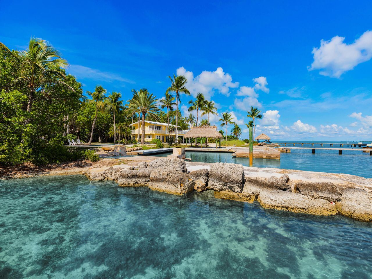 RARE BAYFRONT ACREAGE WITH 200 FEET OF WATERFRONT - A rare offering at the edge of Key Largo and the Village of Islamorada, this double lot spans nearly one acre on a prime point of land on Florida Bay with over 200 feet of linear improved shoreline - double the width compared to typical parcels. Located in a tucked-away enclave of bayfront estates nestled among native hardwoods, just over an hour from the City of Miami and Miami International Airport, offering unmatched privacy with unbeatable ...RARE BAYFRONT ACREAGE WITH 200 FEET OF WATERFRONT - A rare offering at the edge of Key Largo and the Village of Islamorada, this double lot spans nearly one acre on a prime point of land on Florida Bay with over 200 feet of linear improved shoreline - double the width compared to typical parcels. Located in a tucked-away enclave of bayfront estates nestled among native hardwoods, just over an hour from the City of Miami and Miami International Airport, offering unmatched privacy with unbeatable convenience.A spectacular setting with both sunrise and sunset views, featuring a sandy beach, cut-in boat basin served by a deep-water private channel, wade-in beach entry, easy access to Bay with 2 ramps for launching water crafts & Hobie Cats, resort-style pool framed by palms, a concrete pier over crystal-clear blue waters and sandy bay bottom. Amazing sea life can be seen below such as starfish, lobsters & snook while ospreys & other native birds soar overhead finding refuge among the trees, adding vibrant life and natural beauty to the surroundings.Located in an area ideal for riding bikes and walking safely off the highway, the expansive grounds offer room to roam for children and pets--an exceptional setting for a family compound or legacy estate. The existing 4BD 2BA concrete residence with covered outdoor living space provides immediate use and serves as a valuable right to build a custom waterfront retreat tailored to your vision without having to wait for a Monroe County ROGO allocation. With rare development flexibility, captivating views, and premier location, the property stands as one of the most iconic offerings in the Upper Keys.
