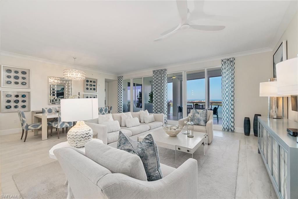 This refined 16th-floor residence in Seaglass at Bonita Bay captures breathtaking, elevated views of the Gulf, Bay, golf course and lush mangroves, offering an elegant retreat in one of Southwest Florida’s desired high-rises. Originally the model residence, this condominium comes turnkey furnished with elegant, designer-selected pieces from the renowned Robb & Stucky. A huge west-facing lanai extends your living space outdoors, enhanced with glass inlays for unobstructed views, electric h...This refined 16th-floor residence in Seaglass at Bonita Bay captures breathtaking, elevated views of the Gulf, Bay, golf course and lush mangroves, offering an elegant retreat in one of Southwest Florida’s desired high-rises. Originally the model residence, this condominium comes turnkey furnished with elegant, designer-selected pieces from the renowned Robb & Stucky. A huge west-facing lanai extends your living space outdoors, enhanced with glass inlays for unobstructed views, electric hurricane shutters and a built-in gas grill, an ideal setting for morning coffee, sunset cocktails or simply taking in the ever-changing coastal panorama. Designed for sophistication and effortless livability, this three-bedroom plus den, 3.5-bath residence welcomes you with walls of floor-to-ceiling glass sliders and picture windows that bathe the interior in natural light while framing dramatic evening sunsets. The open great room seamlessly flows into the dining area and gourmet kitchen, an inviting setting ideal for relaxed living or stylish entertaining. The chef-inspired kitchen features premium cabinetry, a large island with seating, top-tier appliances, gas range and stunning backsplash. The spacious primary suite is a serene private sanctuary with Gulf-facing views, a spa-like bath with double vanities, an oversized shower and two generous walk-in closets. Two beautifully appointed guest suites, each offering its en-suite bath, are connected by a gorgeous east-facing open balcony that captures sweeping views of Bonita Bay golf course and surrounding community, creating a serene and private retreat for visitors. The versatile den offers an ideal flex space for an office, media room or additional guest accommodations. Additional features include two designated parking spaces and an additional storage space. Residents of Seaglass enjoy access to world-class amenities, including a resort-style pool, state-of-the-art fitness center, rooftop sun deck, guest suites, theater room, massage rooms and concierge services. Paired with Bonita Bay’s award-winning lifestyle, featuring miles of walking trails, a marina, private beach park and optional membership to the Bonita Bay Club, this residence offers the ultimate combination of luxury, comfort and convenience. A sophisticated turnkey residence in the sky, ready to enjoy from day one.